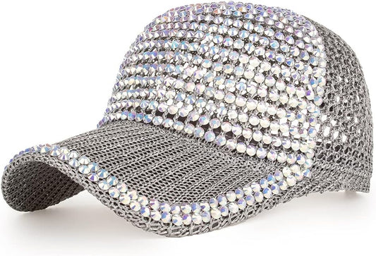 Add a touch of sparkle to your casual outfit with this stylish rhinestone baseball cap....